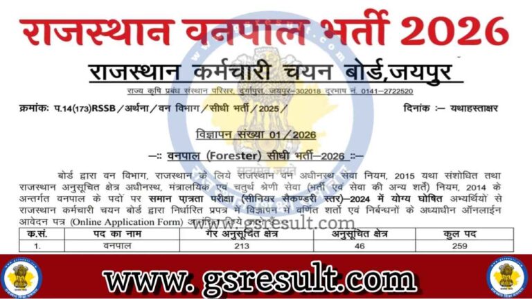 Rajasthan Forester Recruitment 2026: राजस्थान कर्मचारी चयन बोर्ड ने वनपाल भर्ती 2026 का नोटिफिकेशन जारी कर दिया है राजस्थान में …