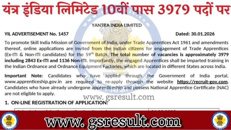Yantra India Limited bharti 2026: यंत्र इंडिया लिमिटेड भर्ती का 10वीं पास 3979 पदों पर नोटिफिकेशनजारी