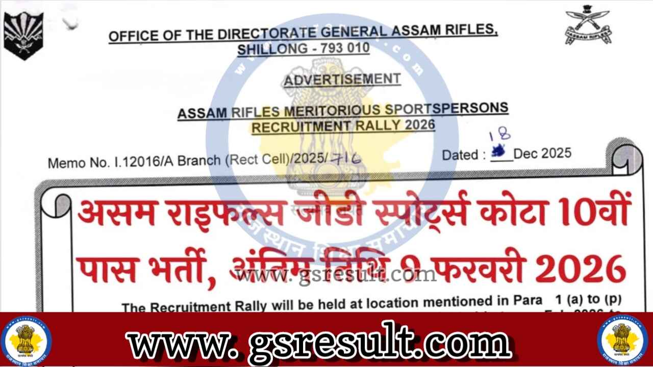असम राइफल्स स्पोर्ट्स कोटा भर्ती 2026 के लिए स्पोर्ट्स पर्सन मान्यता प्राप्त बोर्ड से 10वीं कक्षा पास होना चाहिए अभ्यर्थी स्पोर्ट्स योग्यता की विस्तृत जानकारी आधिकारिक नोटिफिकेशन से प्राप्त कर सकते हैं।