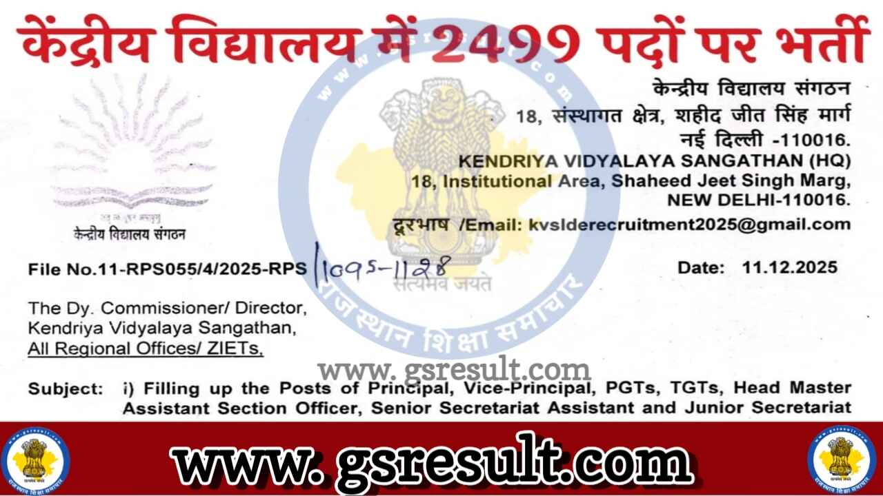 केंद्रीय विद्यालय द्वारा टीचिंग और नॉन टीचिंग के कुल 2499 पदों पर भर्ती की जाएगी इसमें सीमित विभागीय परीक्षा के माध्यम से प्रिंसिपल, वाइस प्रिंसिपल, पीजीटी, टीजीटी, हेडमास्टर, असिस्टेंट सेक्शन ऑफिसर, सीनियर सेक्रेटेरिएट असिस्टेंट एवं जूनियर सेक्रेटेरिएट असिस्टेंट के पदों को भरा जाएगा जबकि सीमित विभागीय प्रतियोगिकी परीक्षा के माध्यम से फाइनेंस ऑफिसर और सेक्शन ऑफिसर के पदों को भरा जाएगा केवीएस भर्ती के लिए वर्तमान में केंद्रीय विद्यालय में कार्यरत कर्मचारी आवेदन फॉर्म भर सकते हैं।