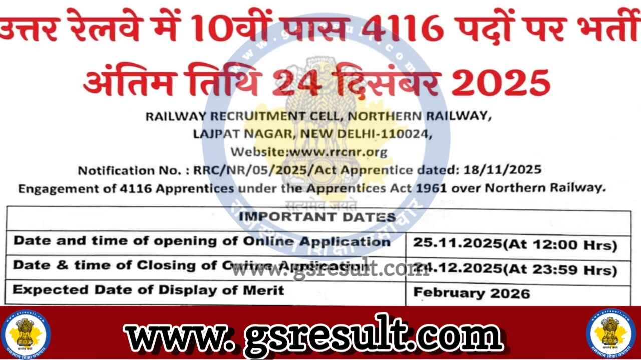 | Start Northern Railway Recruitment 2025 form | 25 November 2025 |