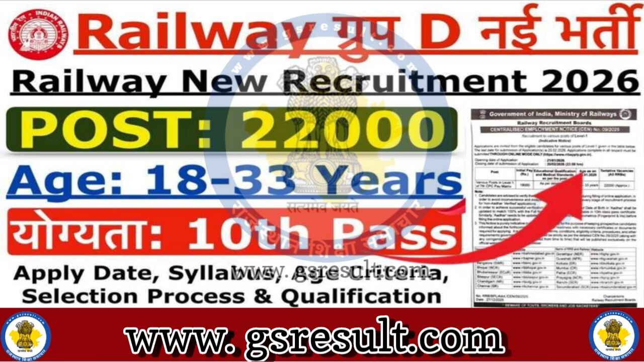 Railway Group D Bharti 2026: रेलवे ग्रुप डी भर्ती का 10वी पास के लिए 22000 पदो पर नोटिफिकेशन जारी