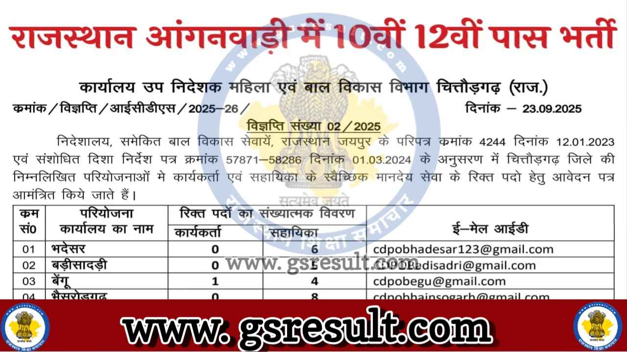 | भीलवाड़ा जिले के लिए आवेदन की अंतिम तिथि (आंगनवाड़ी कार्यकर्ता एवं सहायिका) | 17 दिसंबर 2025 |